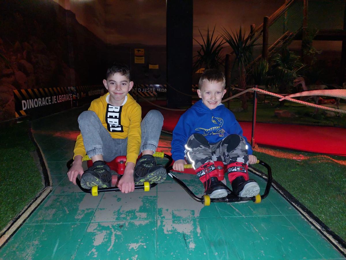 Filip a Vitalii v Dinoparku