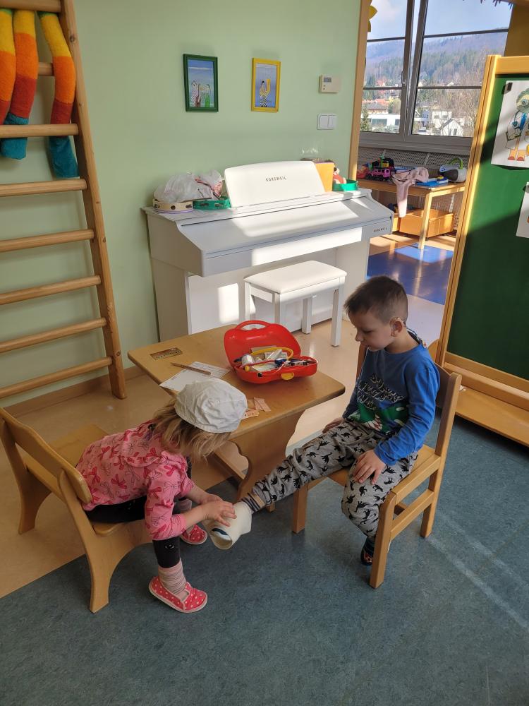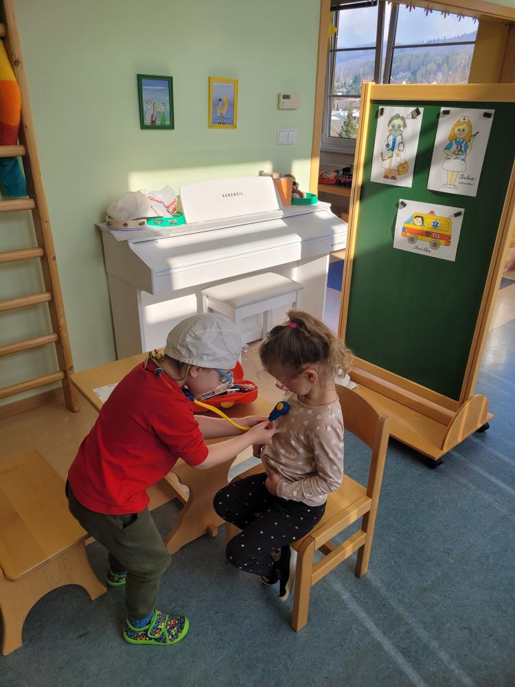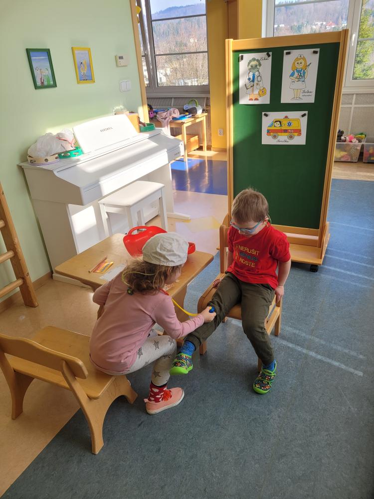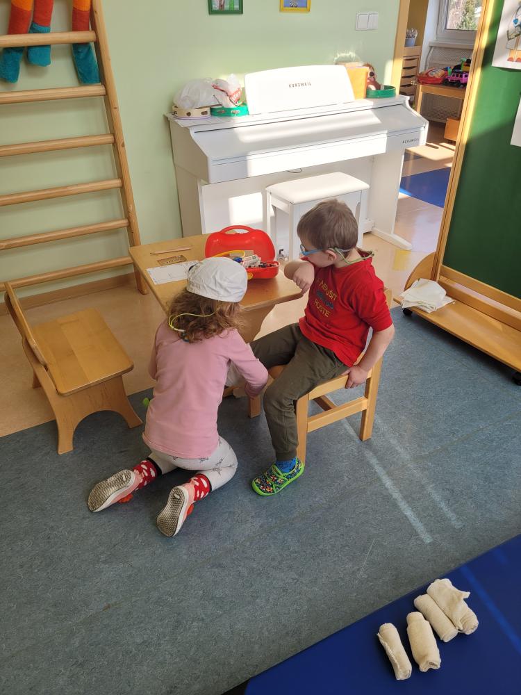 BUDOU Z NÁS LÉKAŘI? Děti z červené kuličky si dopoledne 13. 3. 2024 samy na sobě vyzkoušely jaké to je být lékařem nebo pacientem. Z této aktivity byli všichni nadšení...