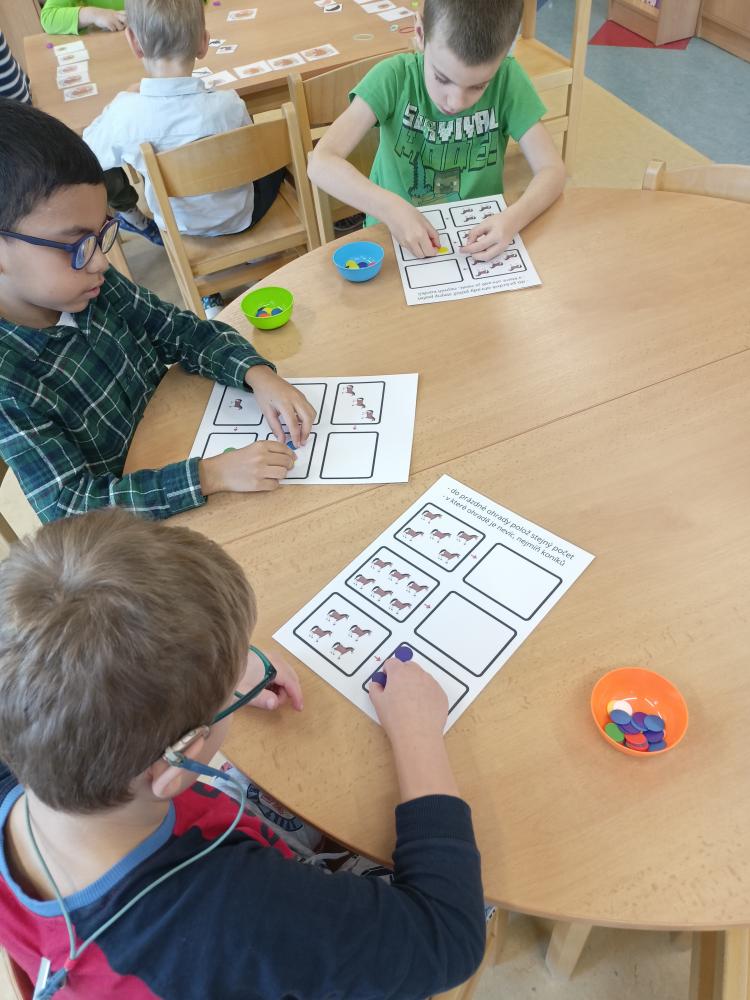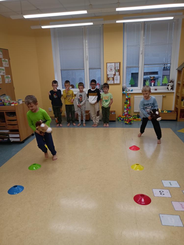 Ve třídě zelená kulička jsme si hravou i poučnou formou připomněli svátek Svatého Martina. Poslechli jsme si příběh o Martinovi. Závodili jsme "na koních", se kterými jsme překonávali různé překážky. Vystřihli jsme koníkovi hřívu. Při malování svatomartinské husy a koníka jsme se seznámili s novými výtvarnými technikami. Zvládli jsme i spočítat koníky na obrázku. Celý týden jsme si moc užili a všechno se nám povedlo.