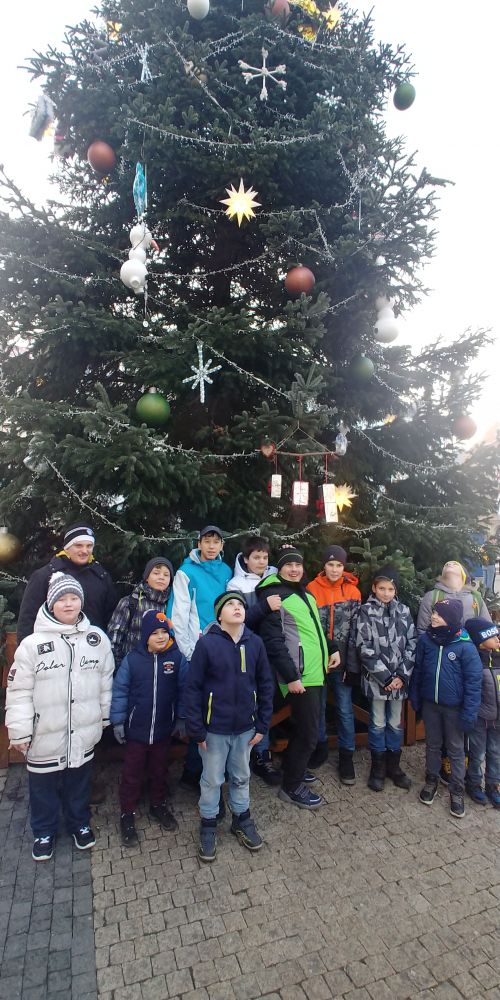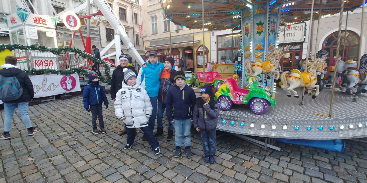 chlapci internátu na vánočních trzích