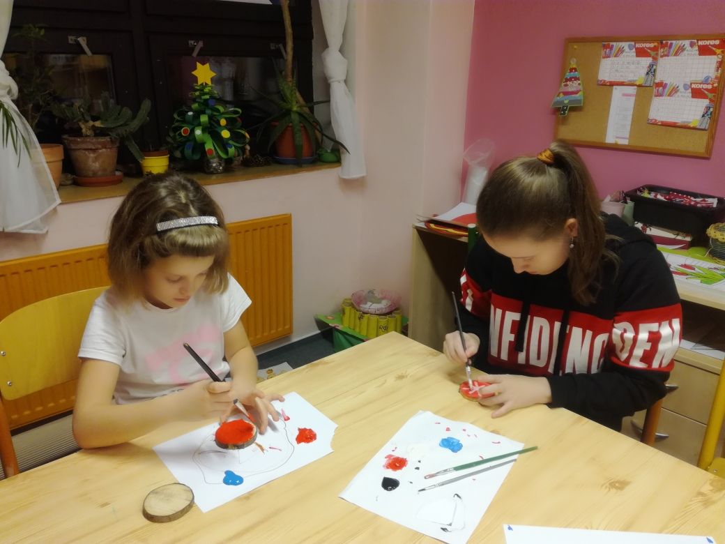 Dívky internátu chystají vánoční výrobky...